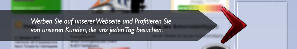 Werben Sie auf unserer Webseite und Profitieren Sie von unseren Kunden, die uns jeden Tag besuchen. Begeistern Sie Sie für Ihre Produkte.